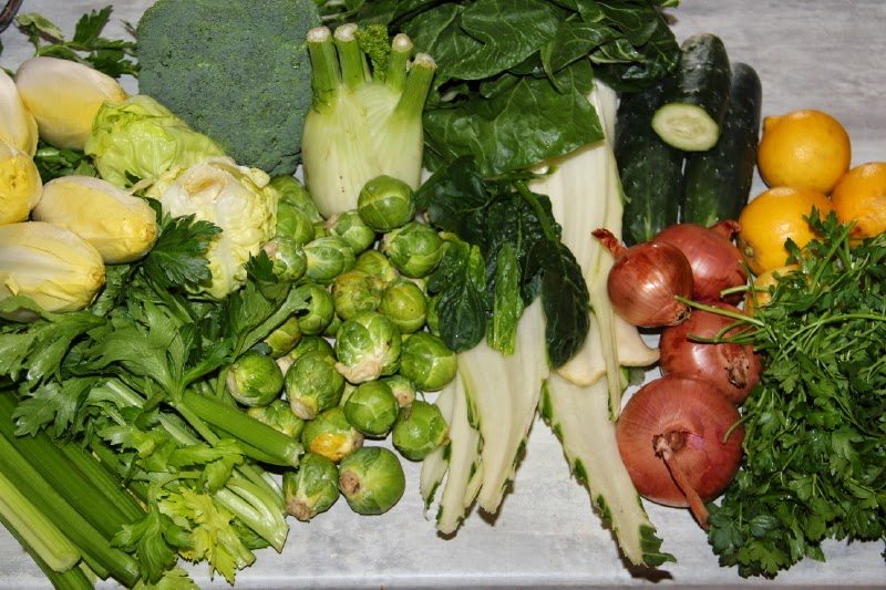 Lunsj denne uken blir Endivie (stekt eller ikke), spinat, persille/sitron/hvitløk, agurk og stagselleri, eventuelle grønnsaksrester fra middag. Lammekjøtt fra kraftkoking, marg, og/eller egg og fisk.