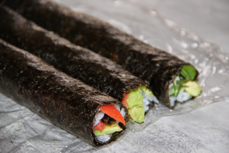Fredag og Sushi som forrett og fiskepanne med ruccolasalat.