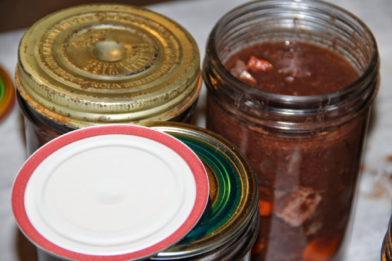 Onsdag blir det litt rødt i den grønne hverdagen, kvernet kjøtt (eller egentlig ett par patéglass som ikke ble tette ved hermetiseringa forrige uke, derav litt lever også ;-), tilsett veldig gjerne hakket lever eller blodpølse det gir enda mer næring til maten....